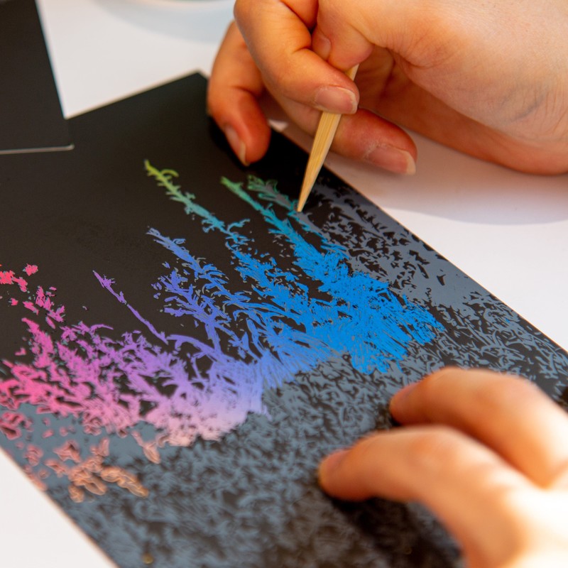 스크래치 보드를 나무펜을 활용하여 조금씩 긁어 보세요.