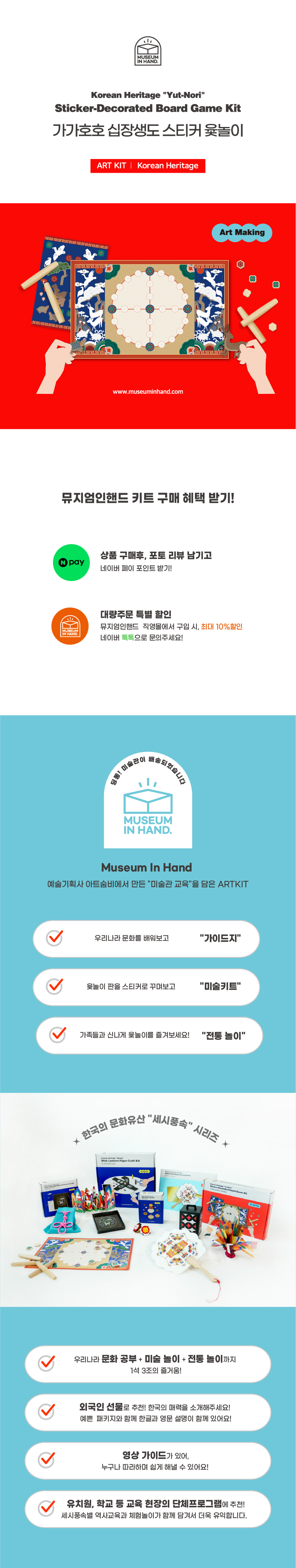 '가가호호 십장생도 스티커 윷놀이' 키트를 활용하여 십장생도 윷놀이판 위에서 우리나라 대표 전통놀이 윷놀이를 즐겨보세요!