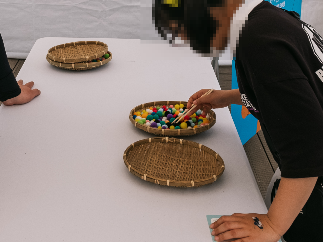 젓가락으로 콩을 집어 옮기는 단순한 놀이 속에는 집중과 빠른 판단이 함께 필요해요.