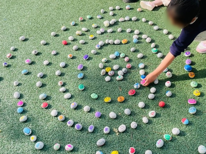 결과물 | 참여자의 개성이 담긴 컬러링 돌이 모여 완성된 친환경 설치 미술 전시 |