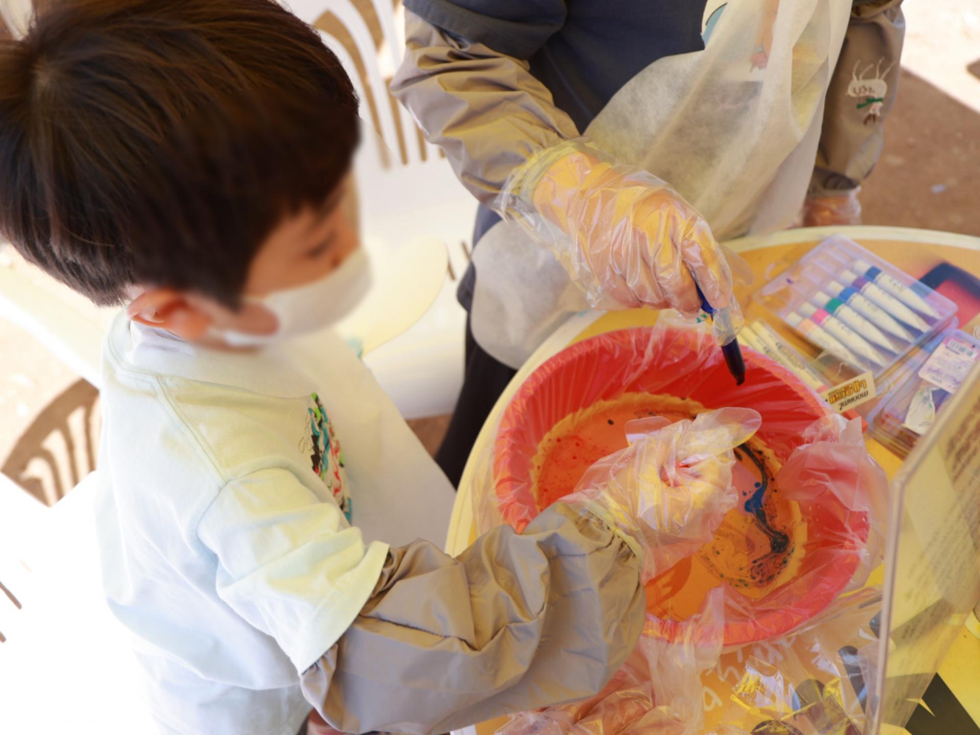 물과 물감이 만나 만들어내는 움직임을 관찰하며, 마블링 기법의 기본 원리를 직접 경험해보는 미술 체험이에요.