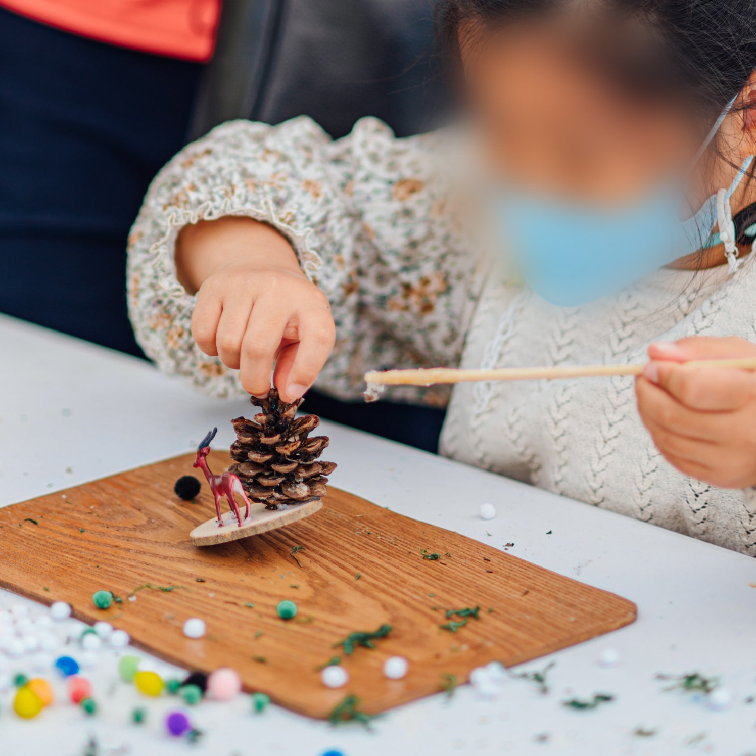 10분 | 재료 살펴보기: 솔방울, 동물 피규어, 다양한 장식 재료를 살펴보며 사용할 요소 고르기 | |