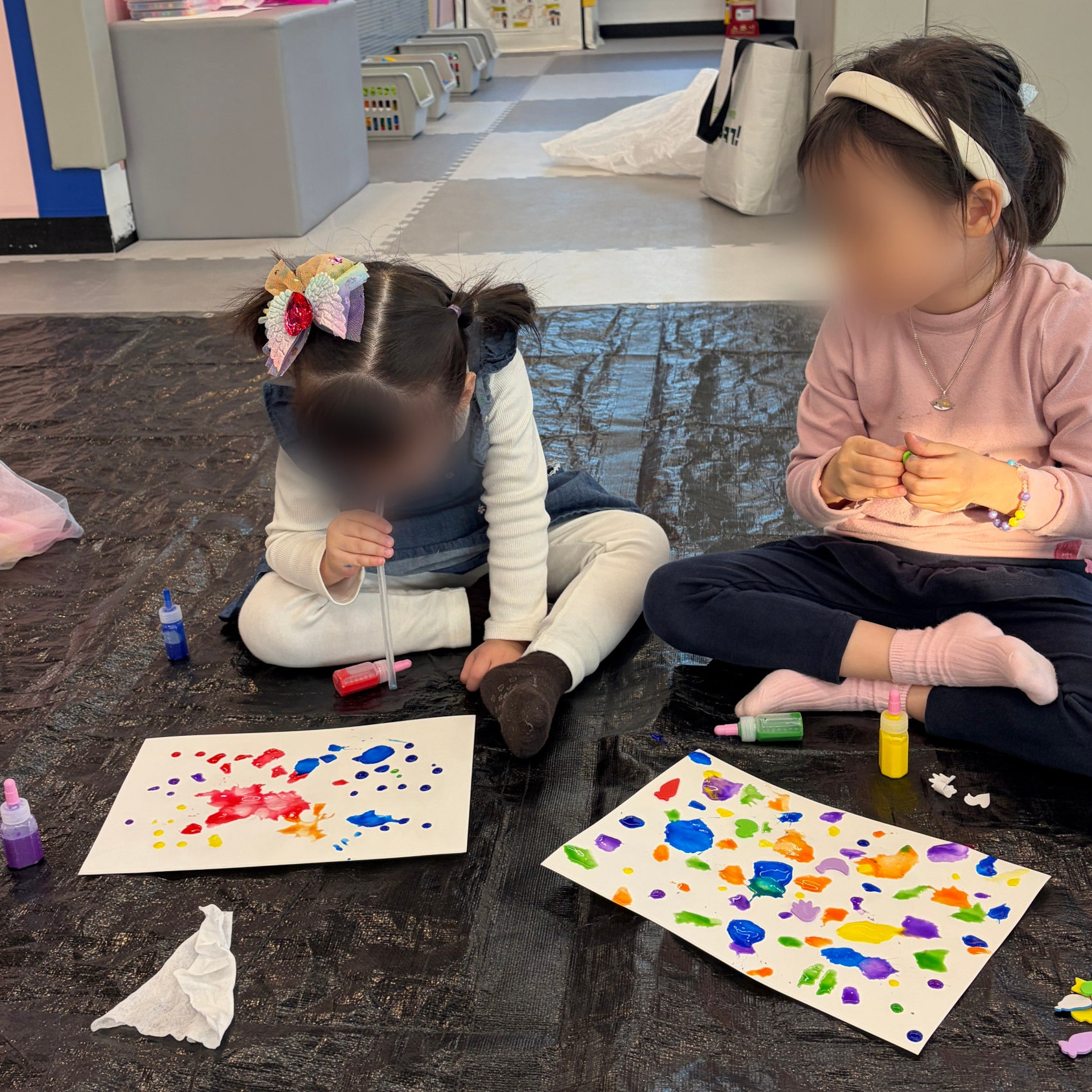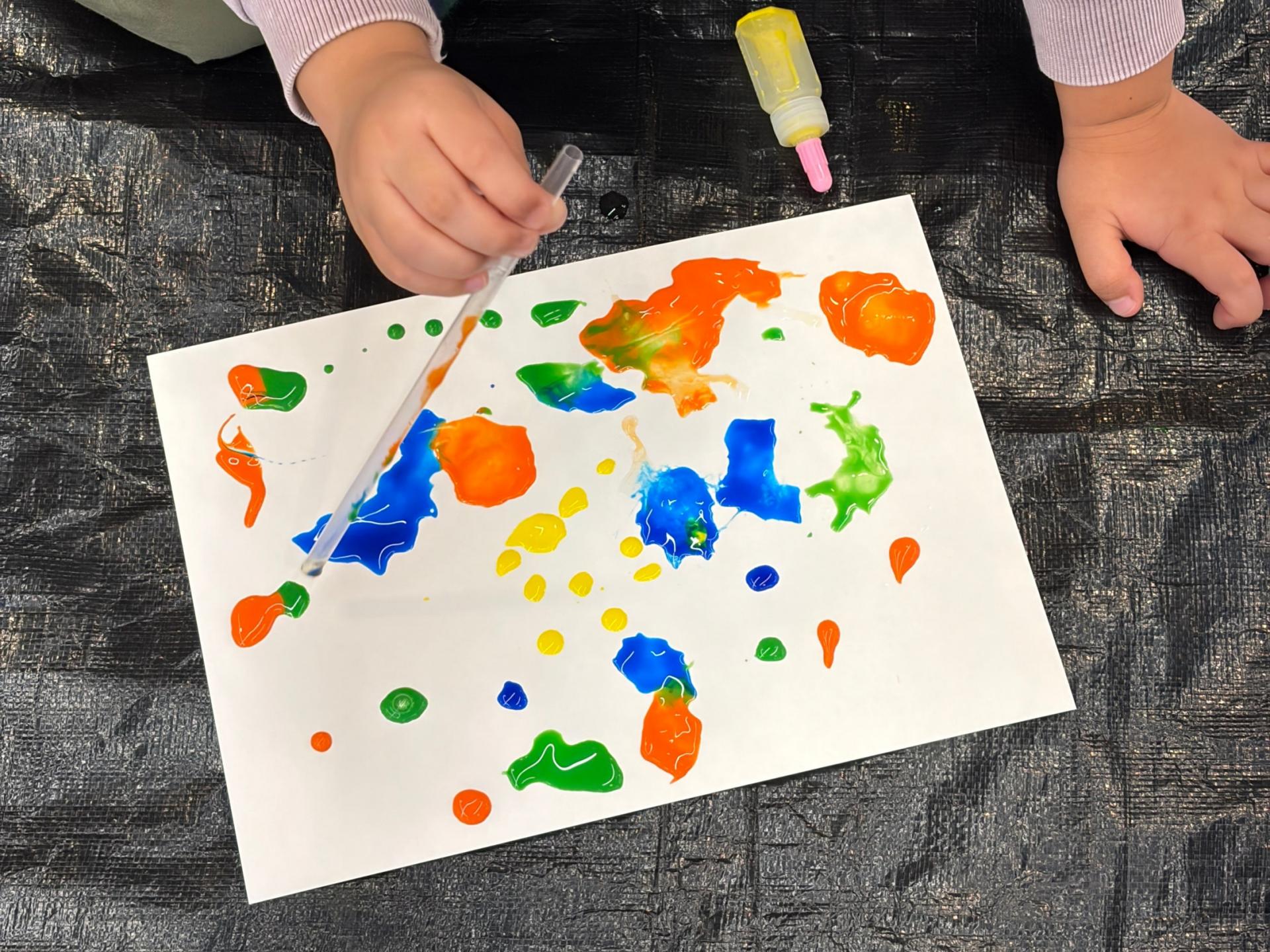 빨대를 이용해 물감을 불어보는 활동은 예술적 감각을 일깨워줍니다.