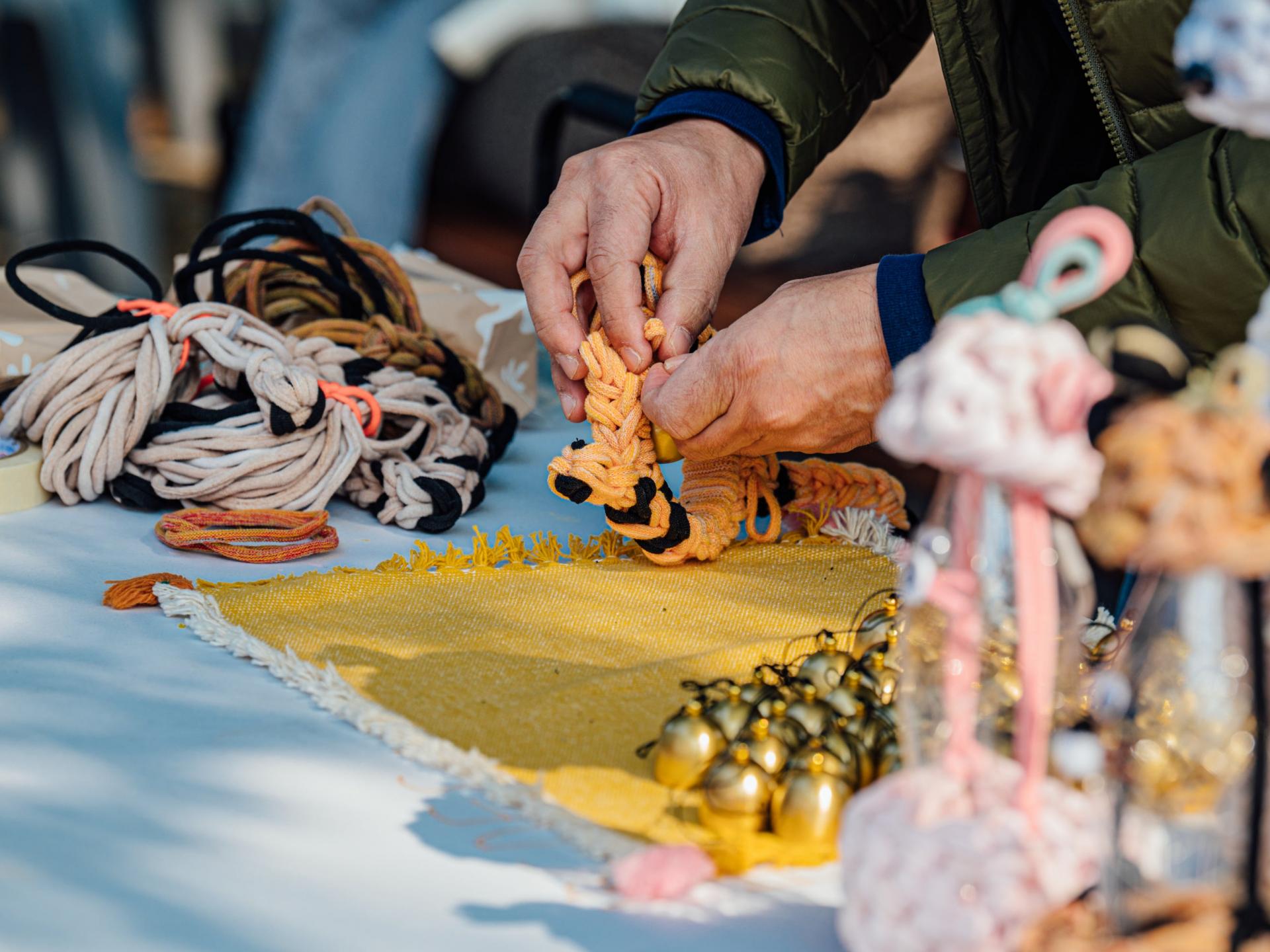 버려지는 소재인 양말목을 엮어