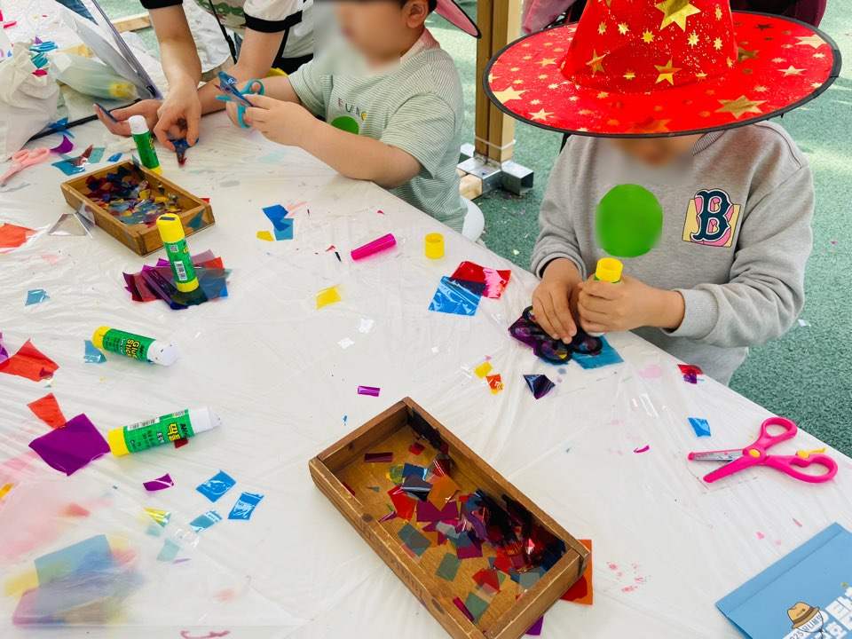 30분 | 셀로판지 붙이기: 다양한 색의 셀로판지를 오려 도안 위에 붙여보기 | |