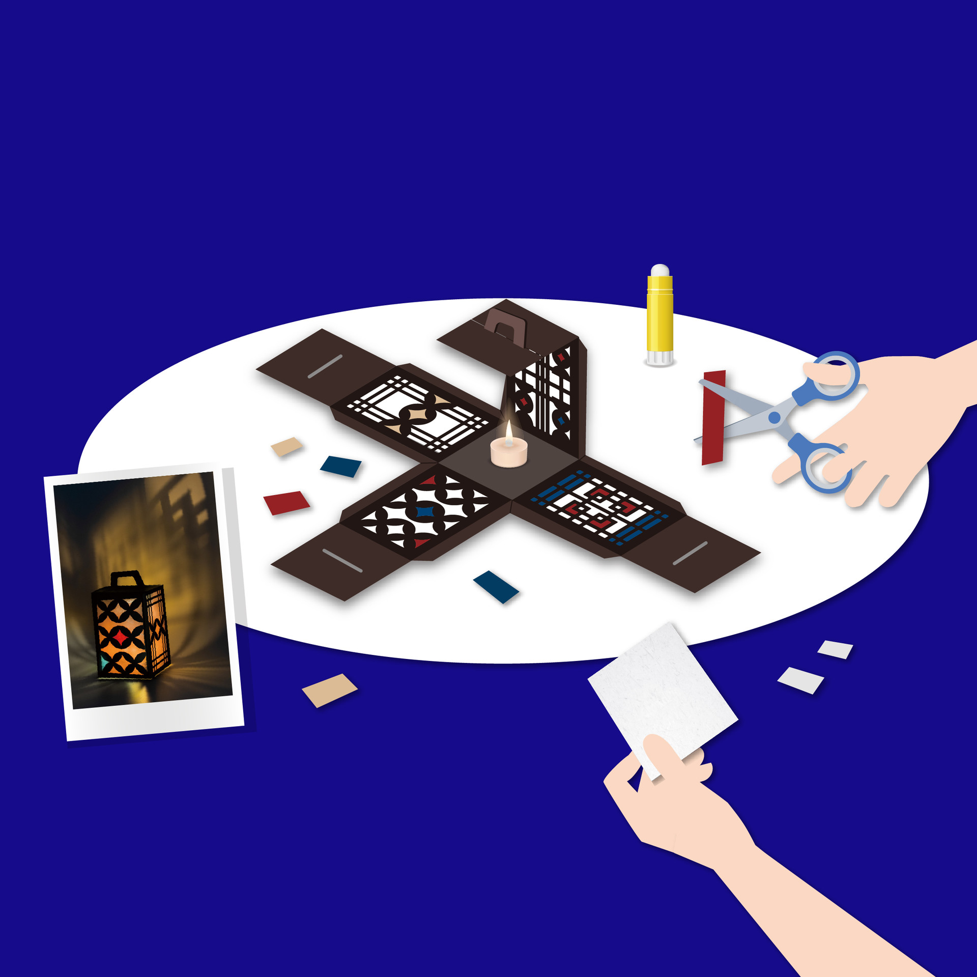 결과물 | 전통 문양과 빛이 어우러진 소원등 완성 및 밝혀진 문양과 그림자가 만들어내는 공간 감상 |
