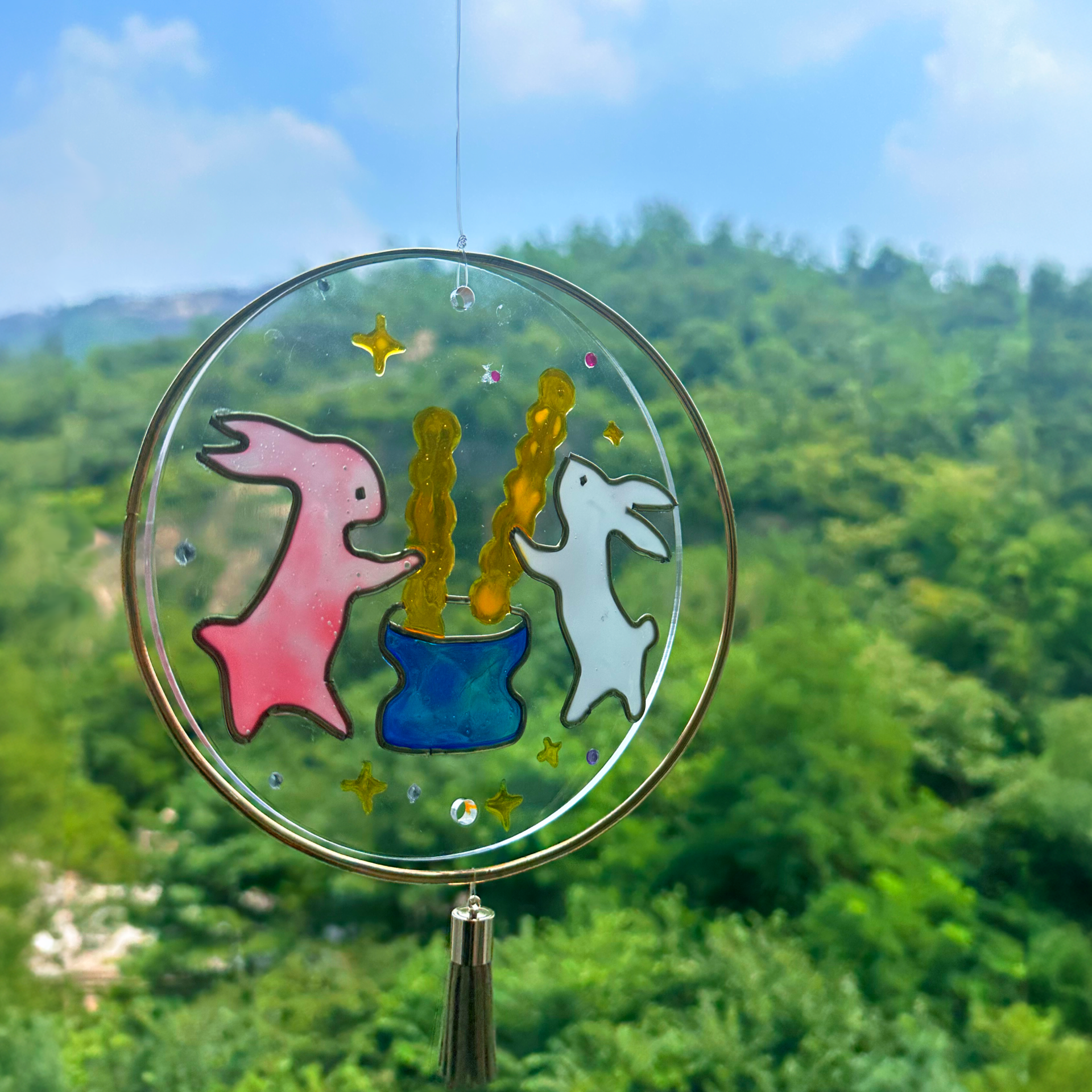 마지막으로 완성된 썬캐쳐를 창가나 조명 아래에 걸어봅니다.