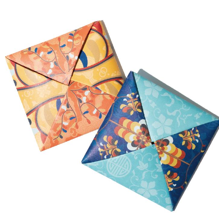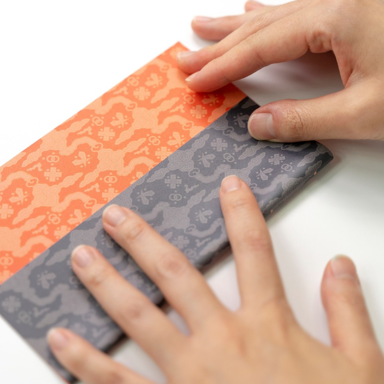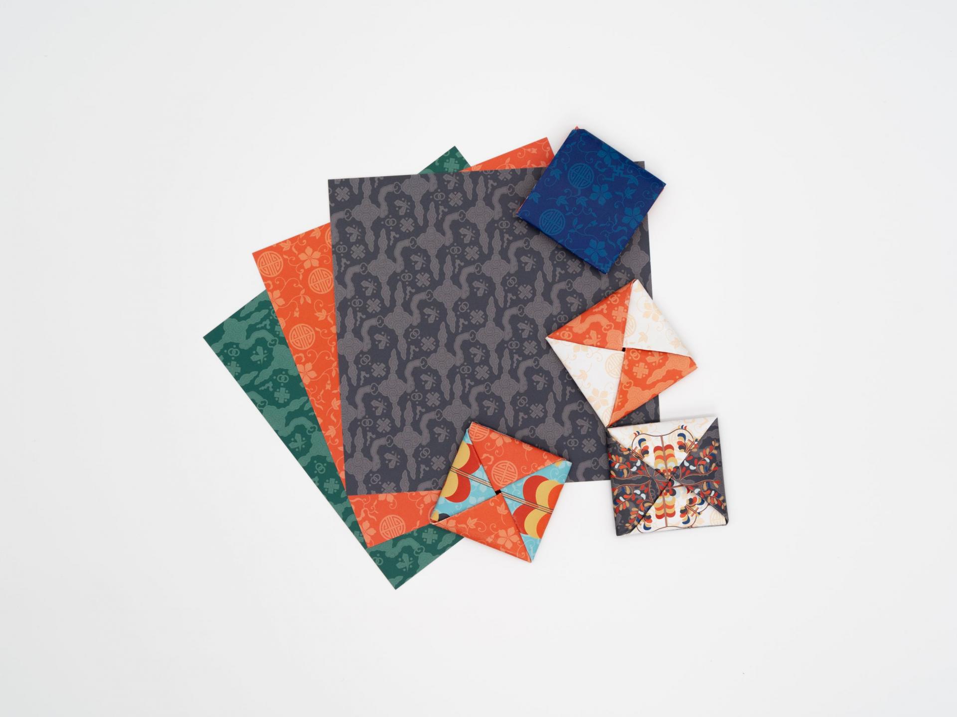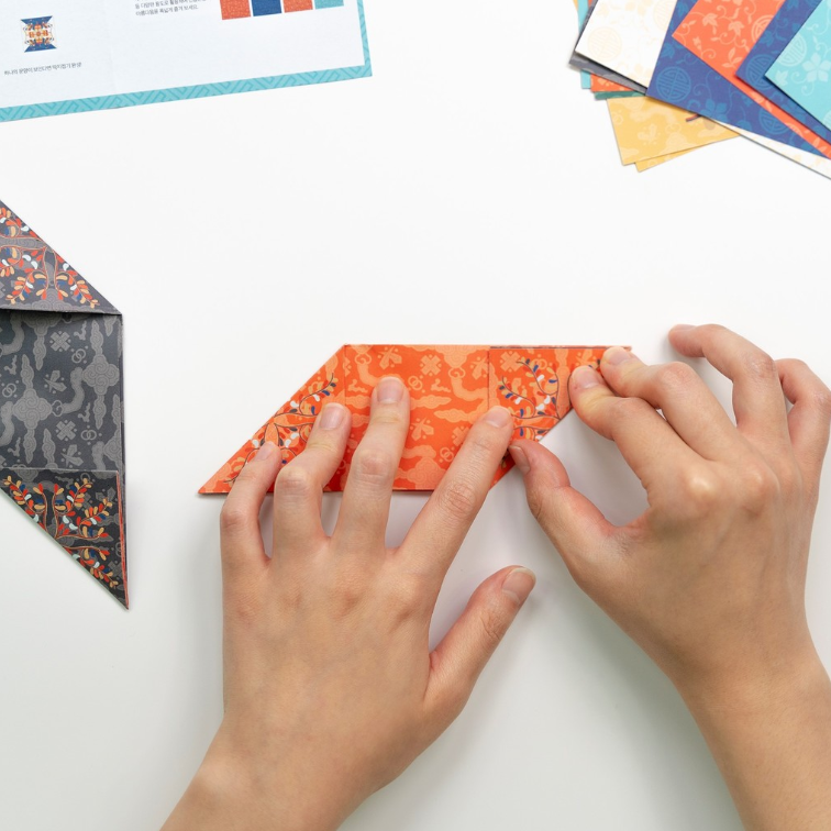 전통 문양 종이를 접어 딱지를 완성합니다.