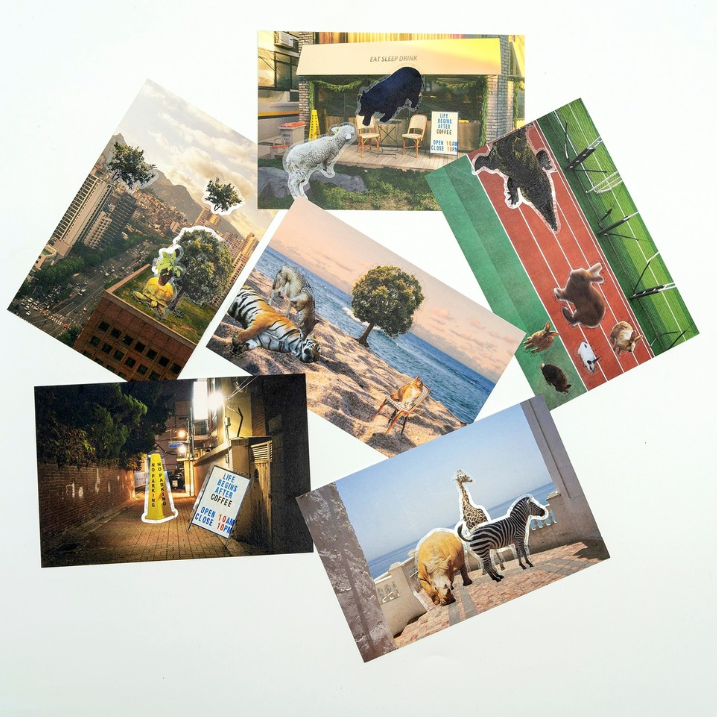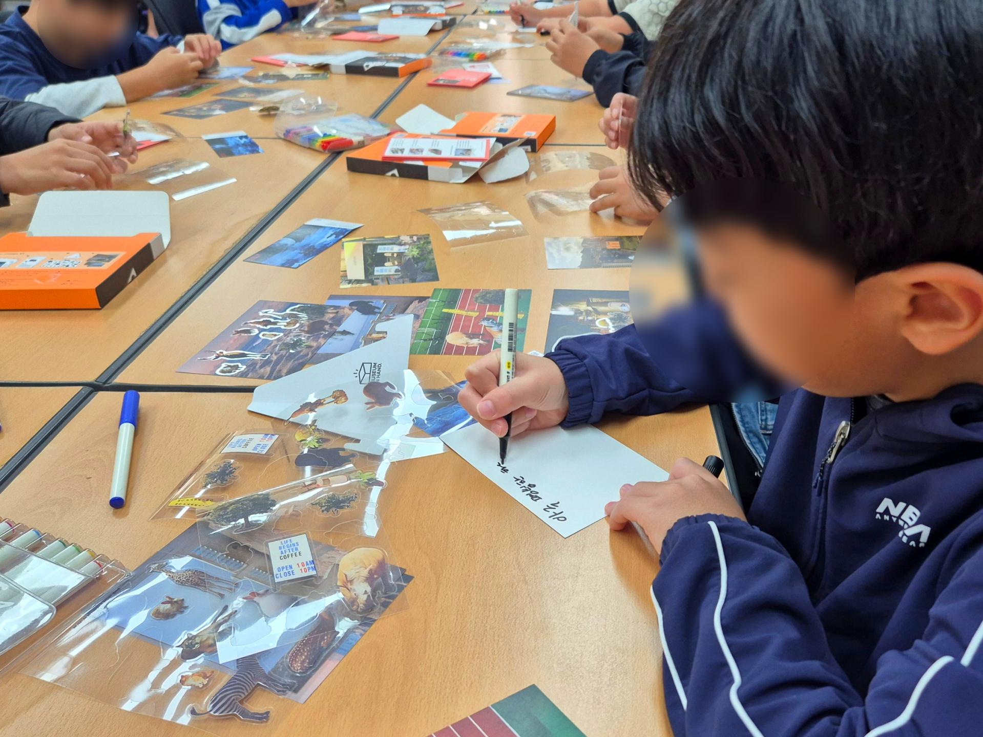 주요 활동 | 작가 작품 감상 → 콜라주 기법 이해 → 일상 풍경 카드·동물 스티커 관찰 → 스티커 배치로 장면 구성 → 메시지 기록·전시 | |