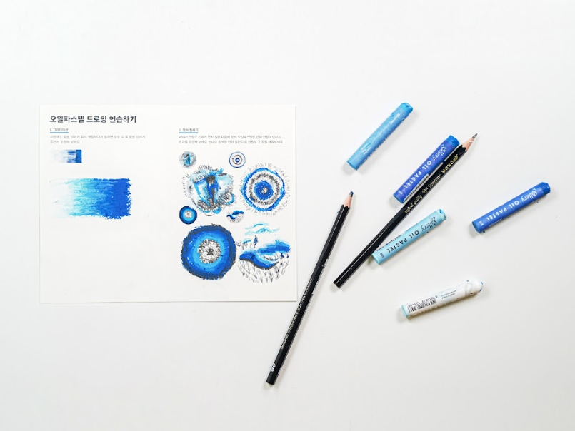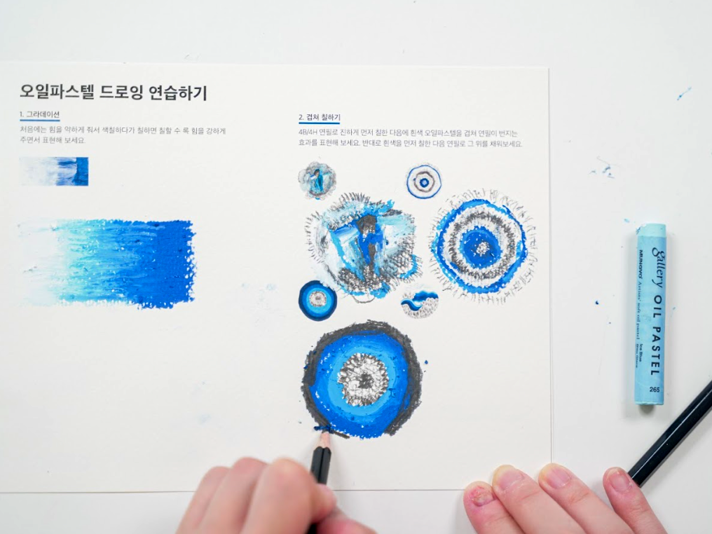 이어 오일 파스텔의 질감과 발색 특성을 확인합니다.