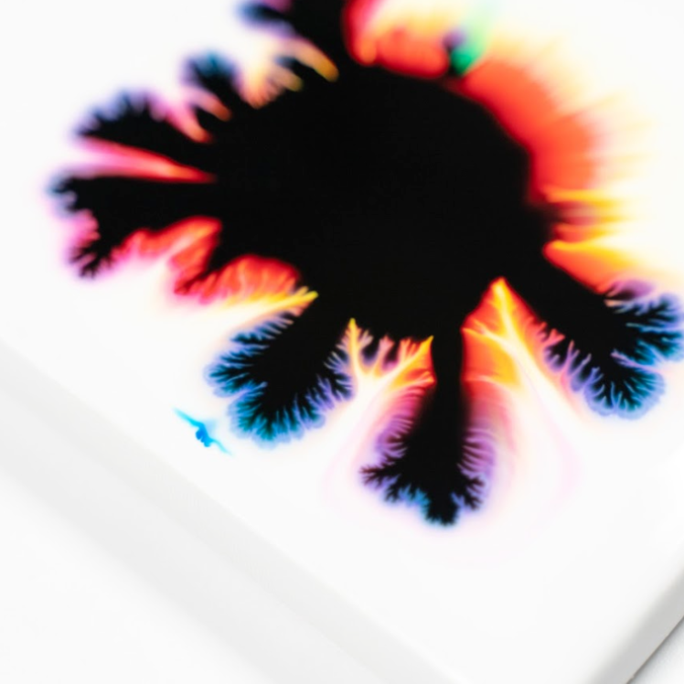 색이 섞이고 번지며 퍼지는 흐름에 따라 화면이 점차 구성됩니다.