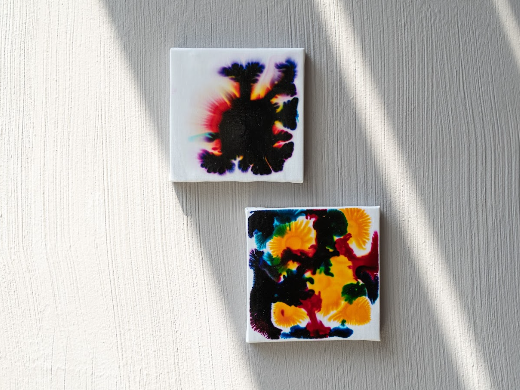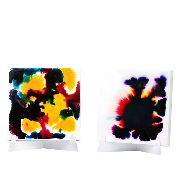 결과물 | 잉크가 번지고 섞이며 완성된 두 점의 추상 회화 작품 제작 및 색의 변화 과정과 표현 결과를 감상하는 미술 체험 |
