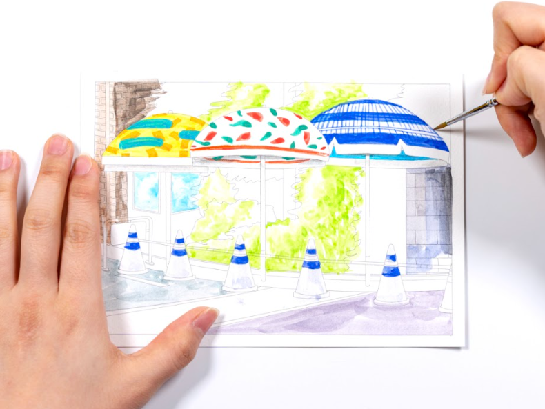 45분 | 수채화 채색하기: 물의 양과 붓 터치를 조절해 골목 풍경을 수채화로 채색하기 | |
