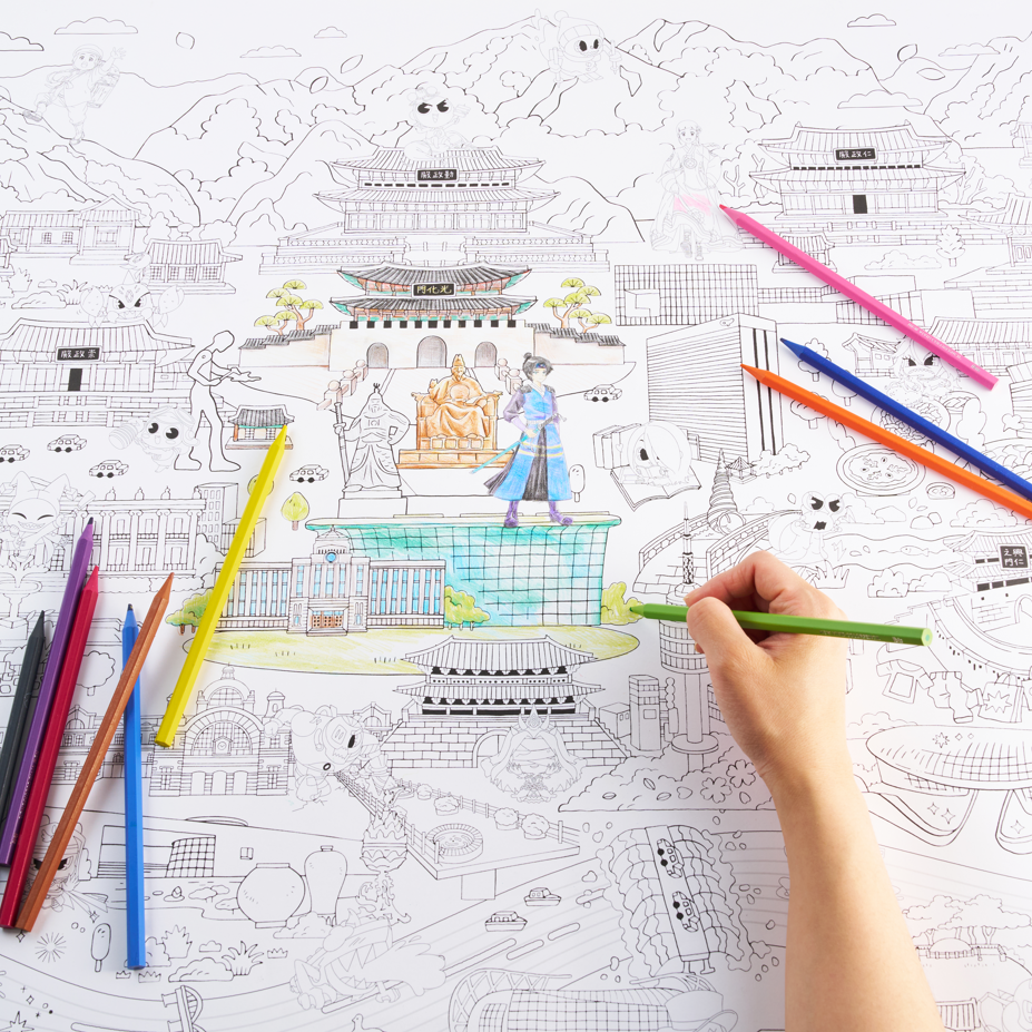 이제 명소와 캐릭터를 원하는 색으로 채색해 포스터를 완성합니다.