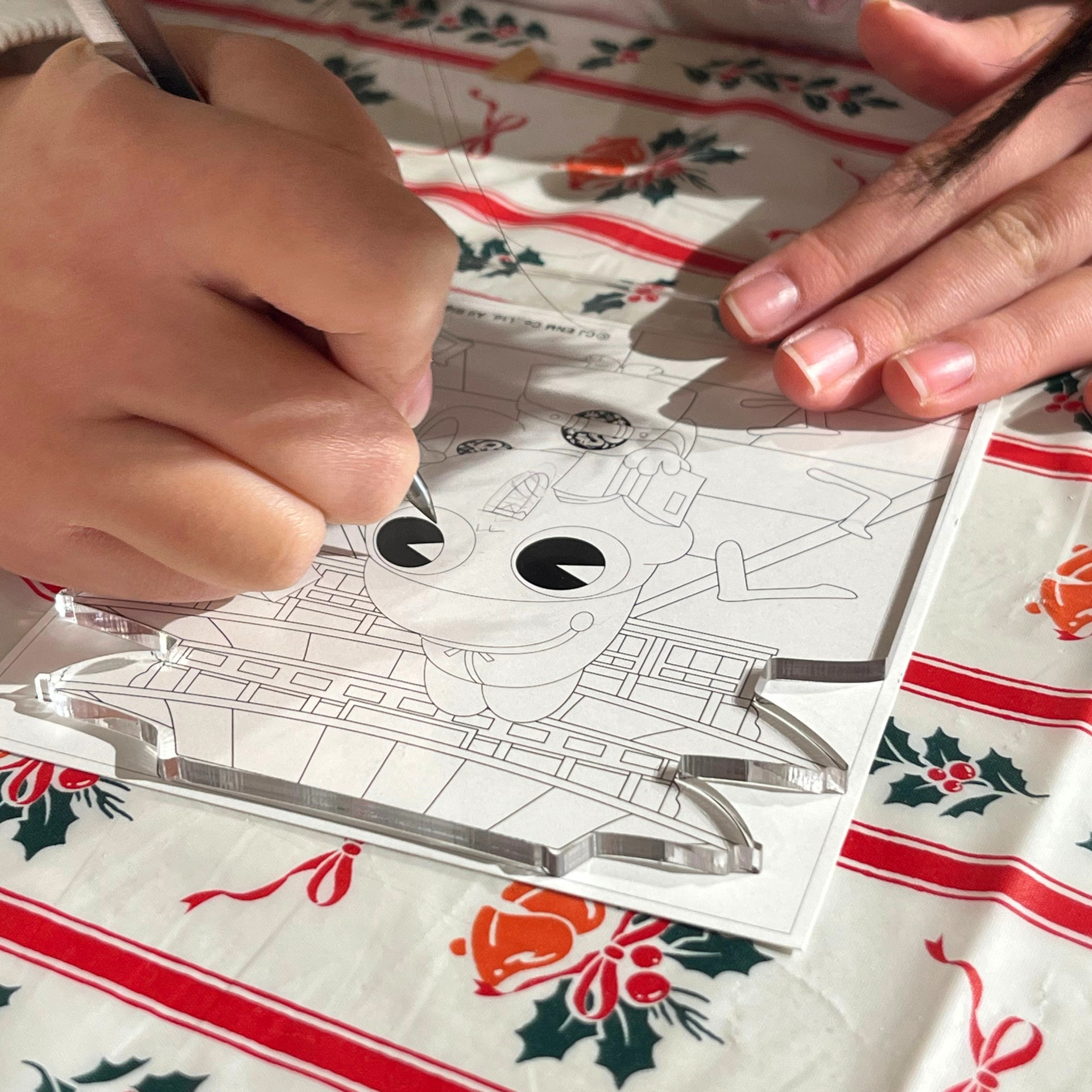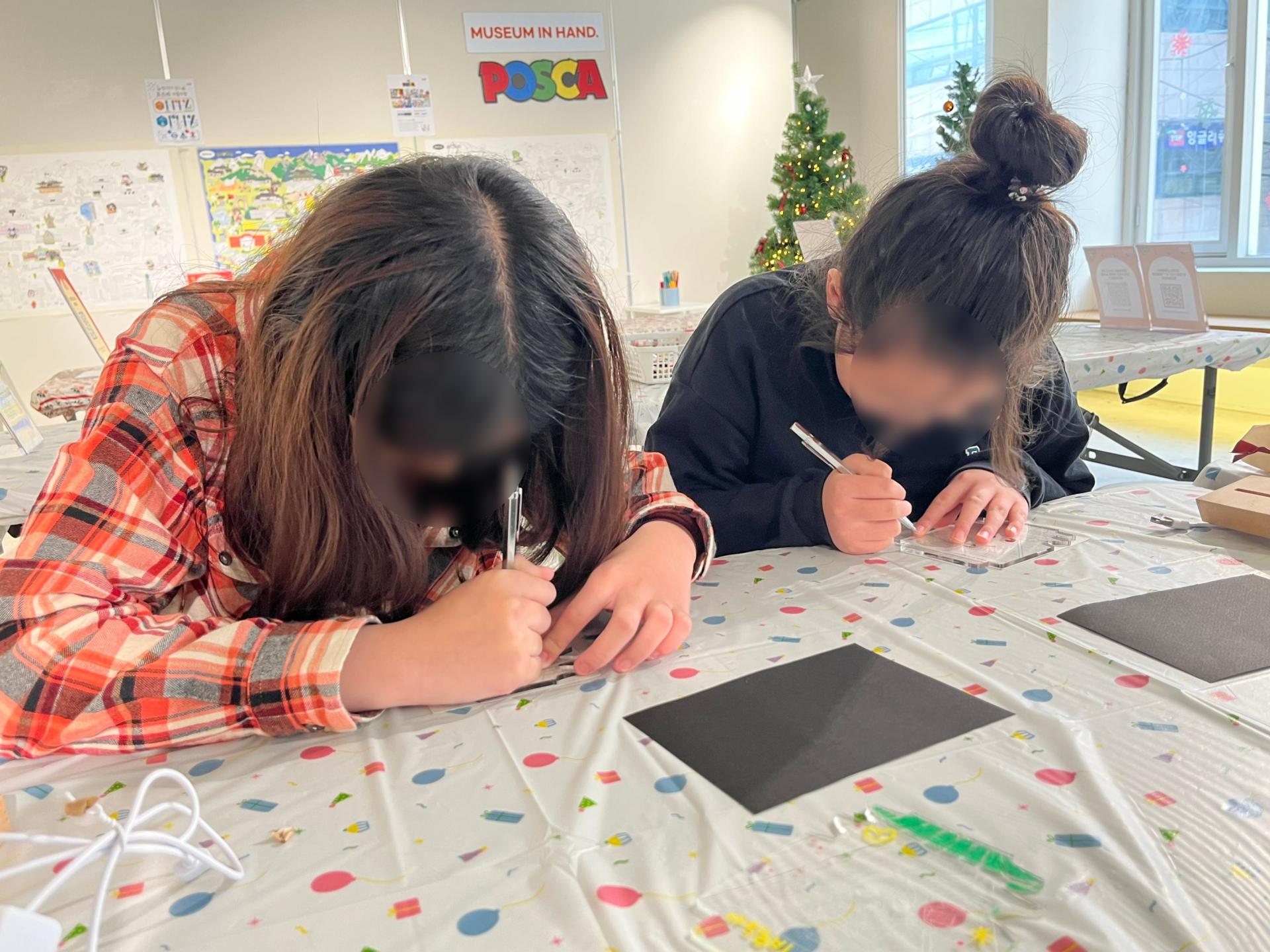 이후 제공된 신비아파트 도안을 아크릴 판 아래에 놓고 펜으로 선을 따라 긁어냅니다.