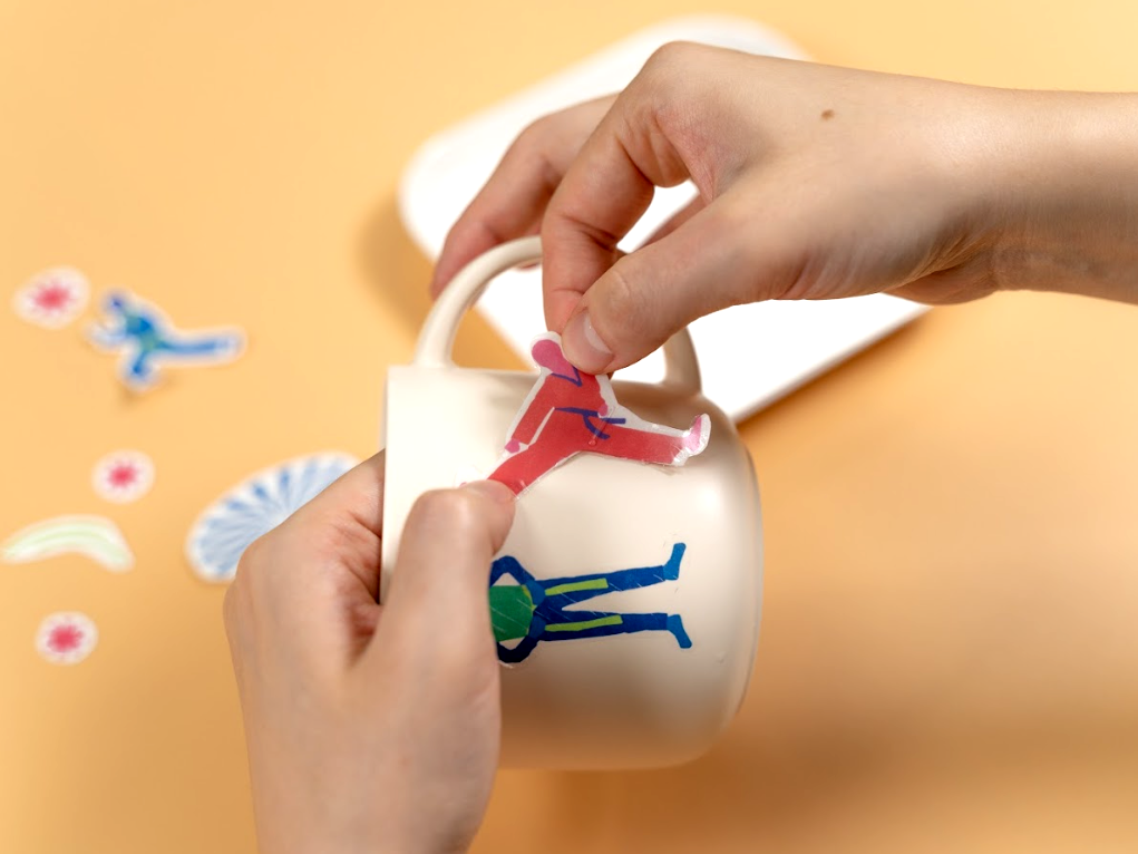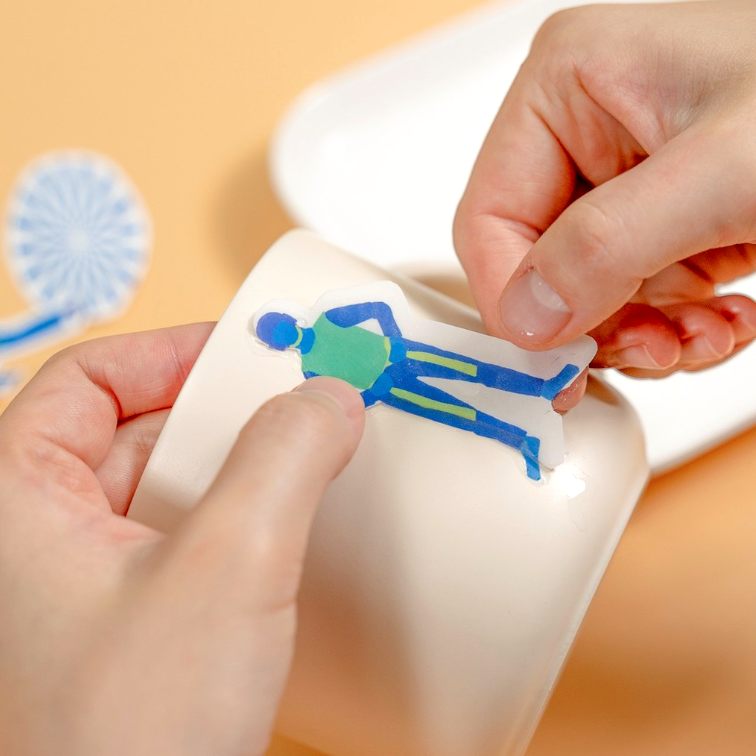 40분 | 물전사 적용하기: 태권도 동작이 담긴 물전사지 도안을 살펴보고 마음에 드는 이미지를 선택한 뒤, 물을 이용해 전사하여 컵 표면에 옮겨 붙여 나만의 태권도 머그컵 완성하기 |