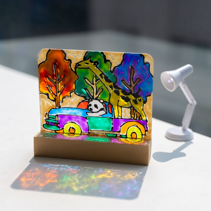 주요 활동 | 작가 작품 감상 → 썬캐쳐 구성 재료·원리 이해 → 글라스 데코로 선 그리기 → 색 채우기 → LED 조명으로 빛 비추기 | |