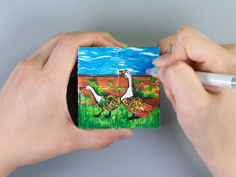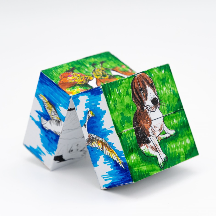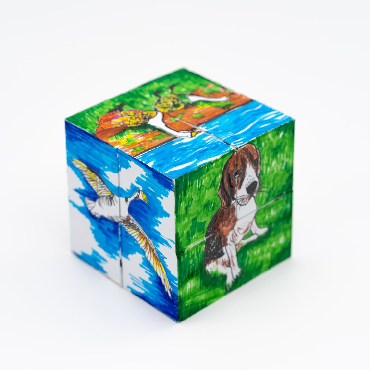 결과물 | 동물과 색으로 완성된 퍼즐형 큐브 작품 제작 및 큐브를 맞추며 장면과 이야기가 이어지는 구조를 체험하는 미술 활동 |