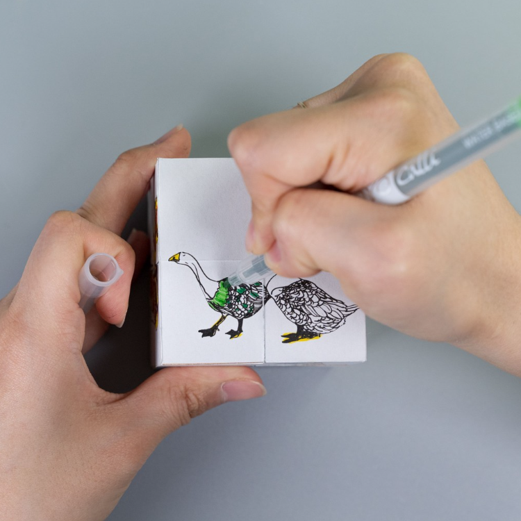 이후 동물 스티커를 큐브의 각 면에 맞춰 부착합니다.