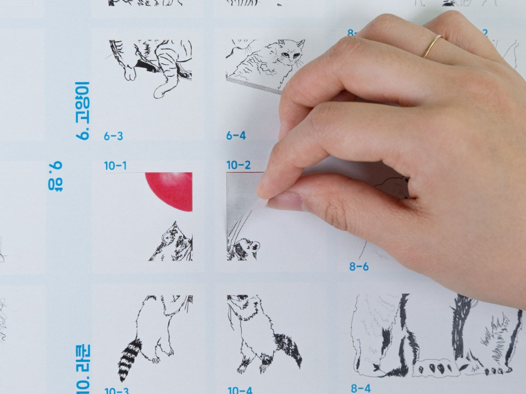 곧이어 큐브 안에 들어갈 동물 스티커를 하나씩 확인합니다.