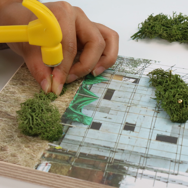 20분 | 구조 구성하기: 건물 이미지를 나무 판 위에 붙이고 위치에 맞춰 못을 박아 기본 구조 만들기 | |