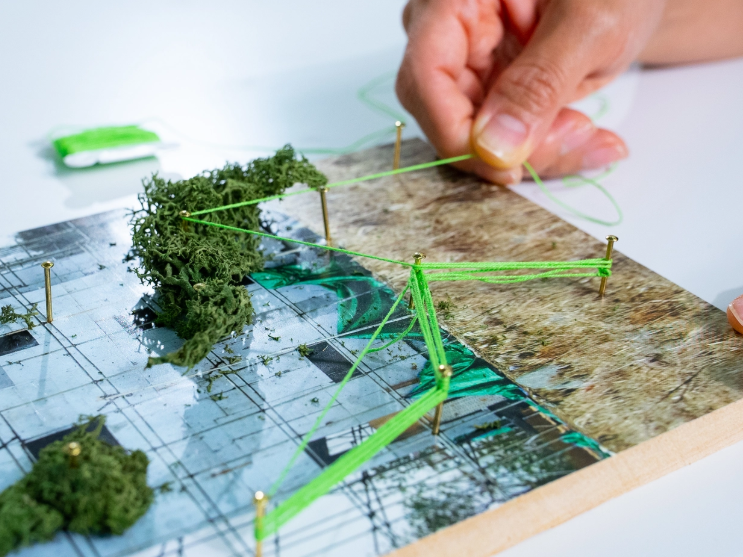 결과물 | 건물과 자연이 실과 선으로 연결된 스트링 아트 작품 완성 및 구조와 재료가 만들어내는 생태적 메시지를 감상하는 경험 |