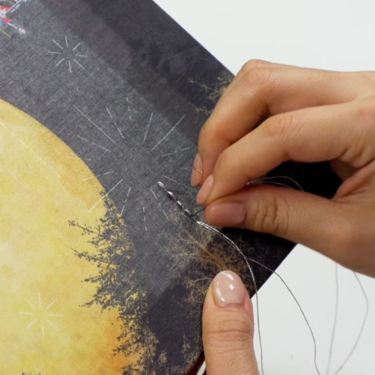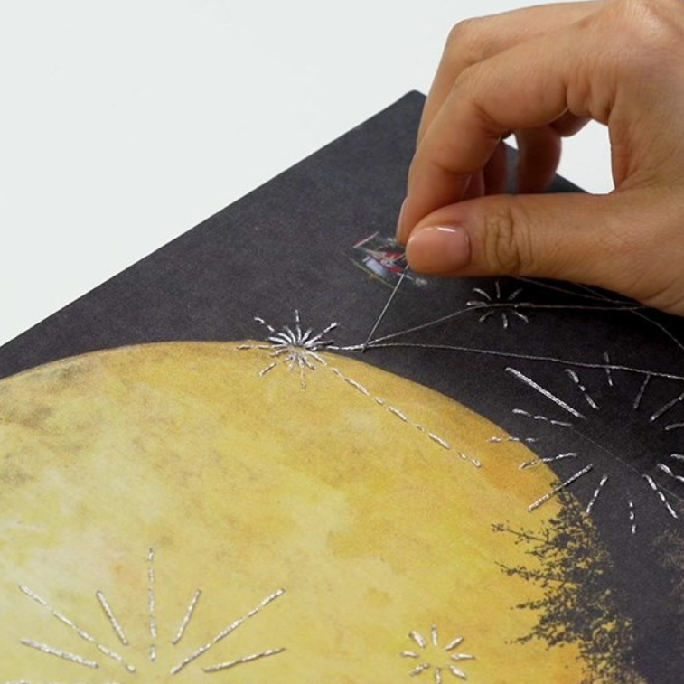| 30분 | 자수 놓기: 도안의 흰 선을 따라 은사를 사용해 별빛을 표현하며 자수 놓기 | |