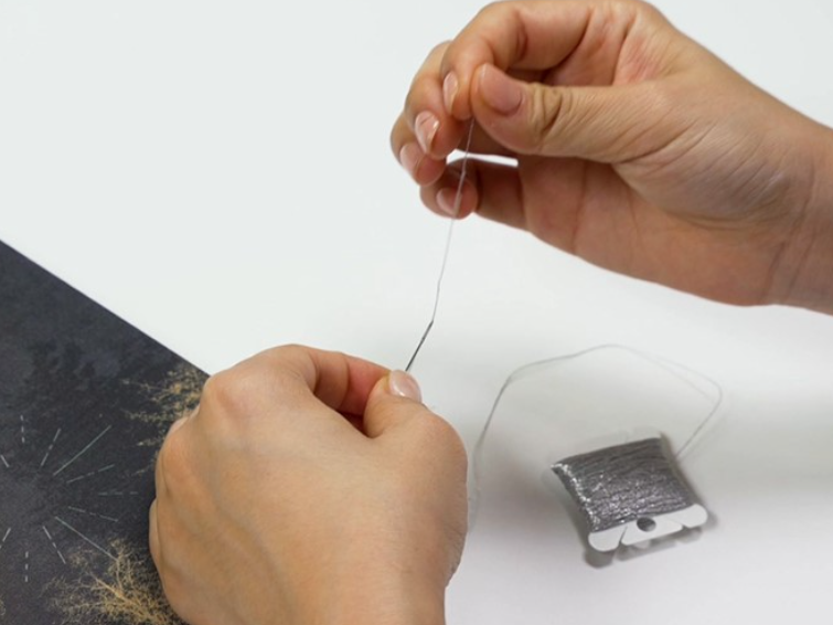 도안의 흰 길을 따라 은사를 수놓아 별빛의 흐름을 만듭니다.